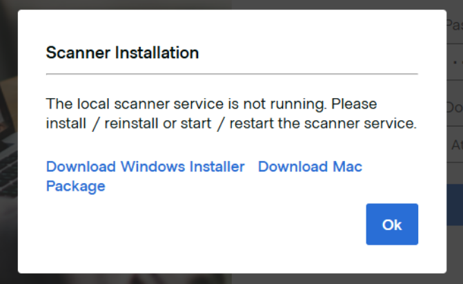 When you sign in to TD Remote Deposit Capture from a computer that was previously activated, you may encounter a warning message indicating that the scanner service cannot be detected or initialized.